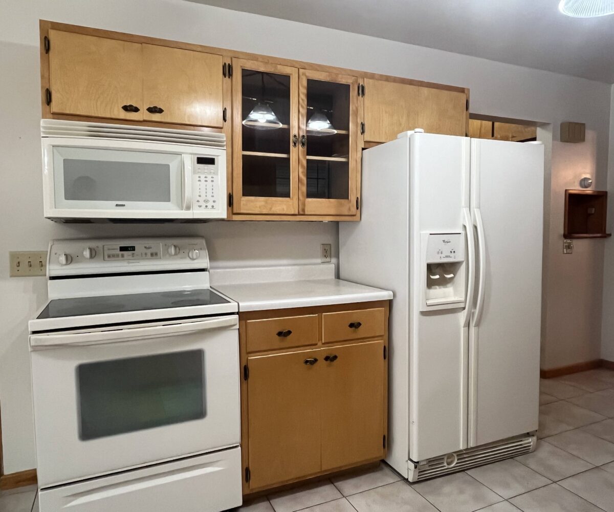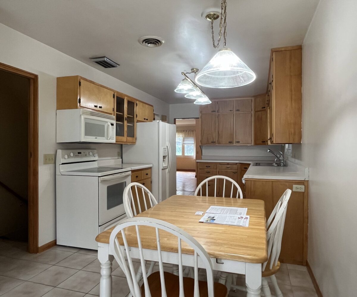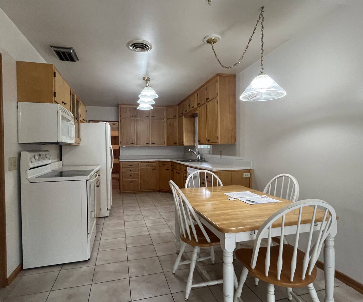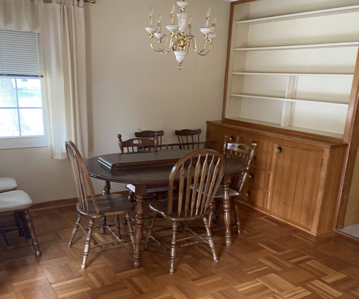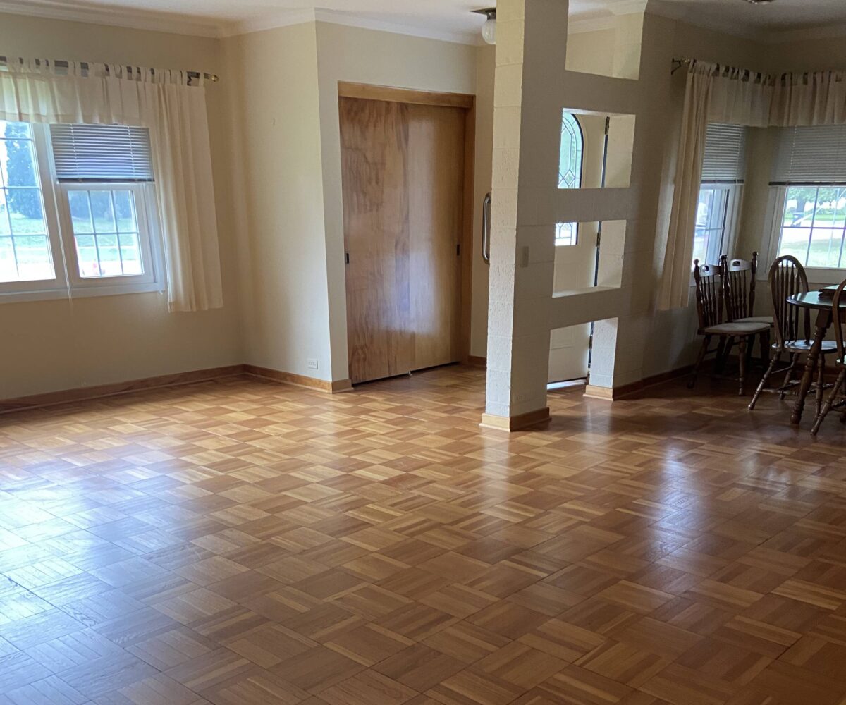 A charming and elegant one-story rambler located on a spacious & shady corner lot in the southeast part of St. James. Featuring an open kitchen & eating area with birch cabinets, built-ins and newer countertop, with ceramic tile floor leading into the partially open family room, ¾ bath, front entry into open living room and formal dining with parquet flooring, built-in hutch & electric fireplace. Lots of closets in the hallway to primary bedroom with triple closet, two more large bedrooms, office area and ¾ bath. Partially finished basement with repainted family room & closet, carpet, and egress window. Home is heated with hot water boiler, natural gas water heater, Culligan water softener, lots of freshly painted walls, exterior brick & trim has been painted, and power washed the entire exterior including the sidewalks and driveway, 100-Amp CB electrical service, sump pump, some waterproofing, new Thermopane windows, extra insulation, newer asphalt shingles, metal facia and soffit, concrete block walls & vinyl siding on the addition. Breezeway with new door that leads to 2-stall garage with attached 3-season porch & patio, lots of landscaping throughout the backyard! Classic homes like this rarely come up for sale and is move-in ready!