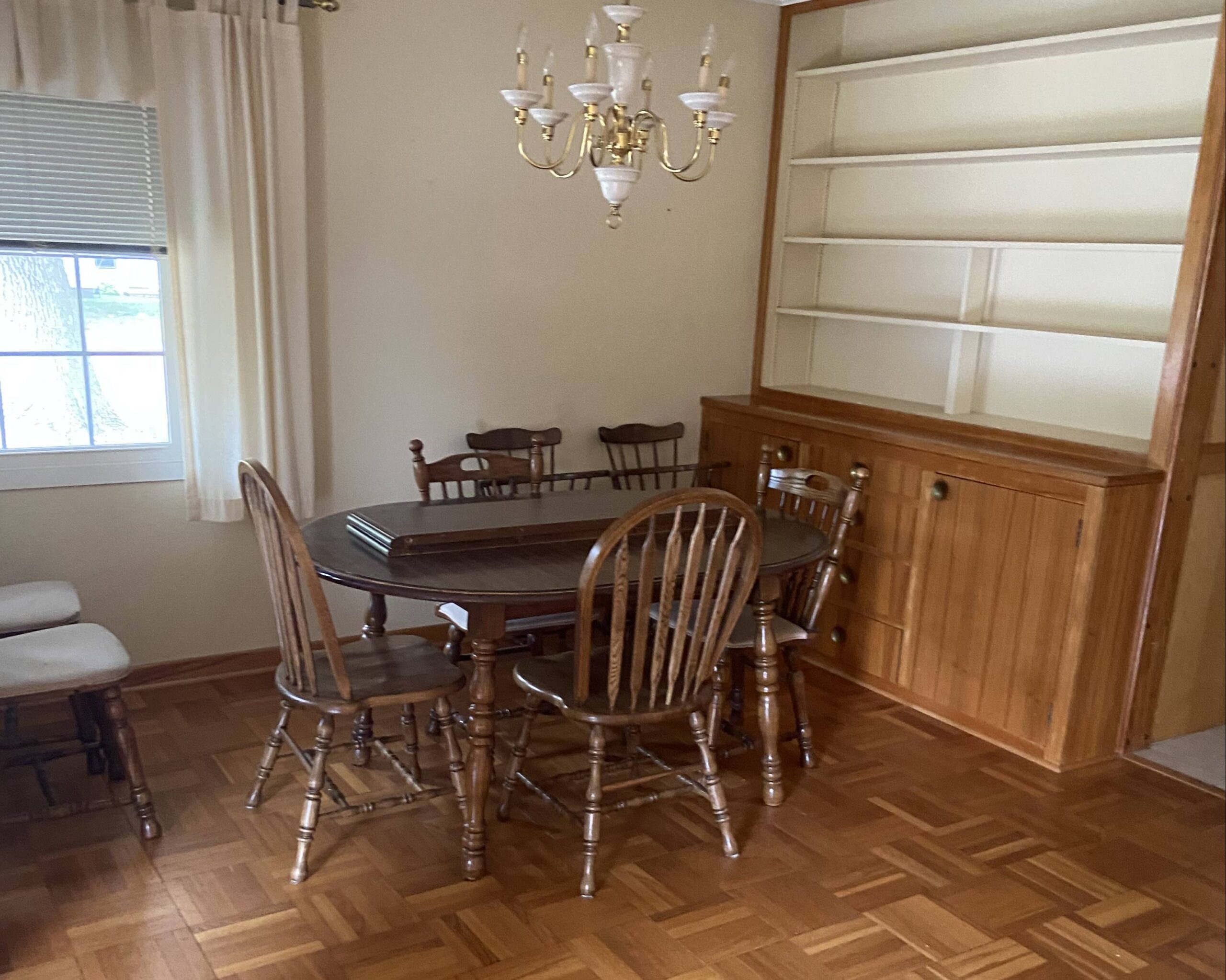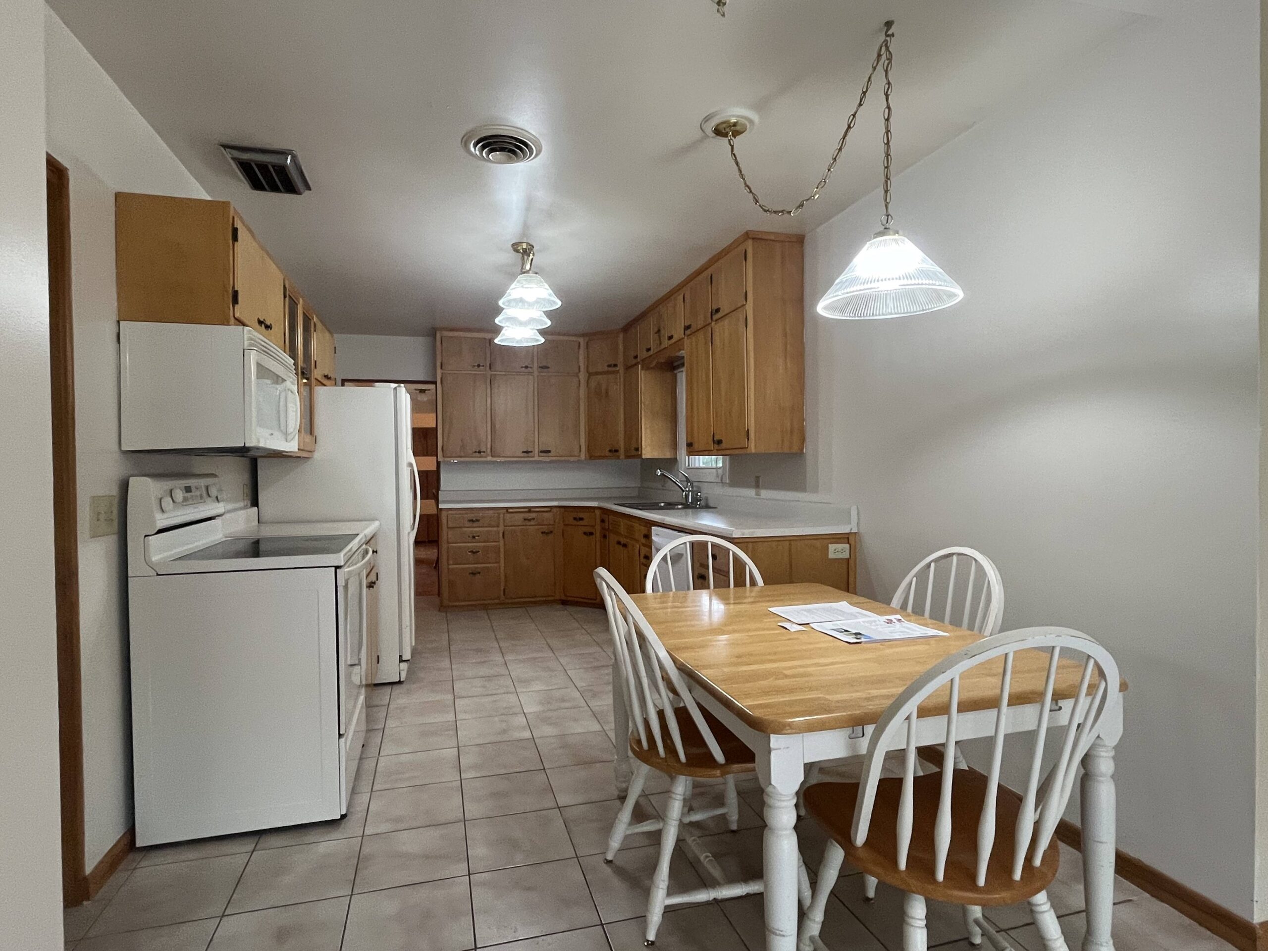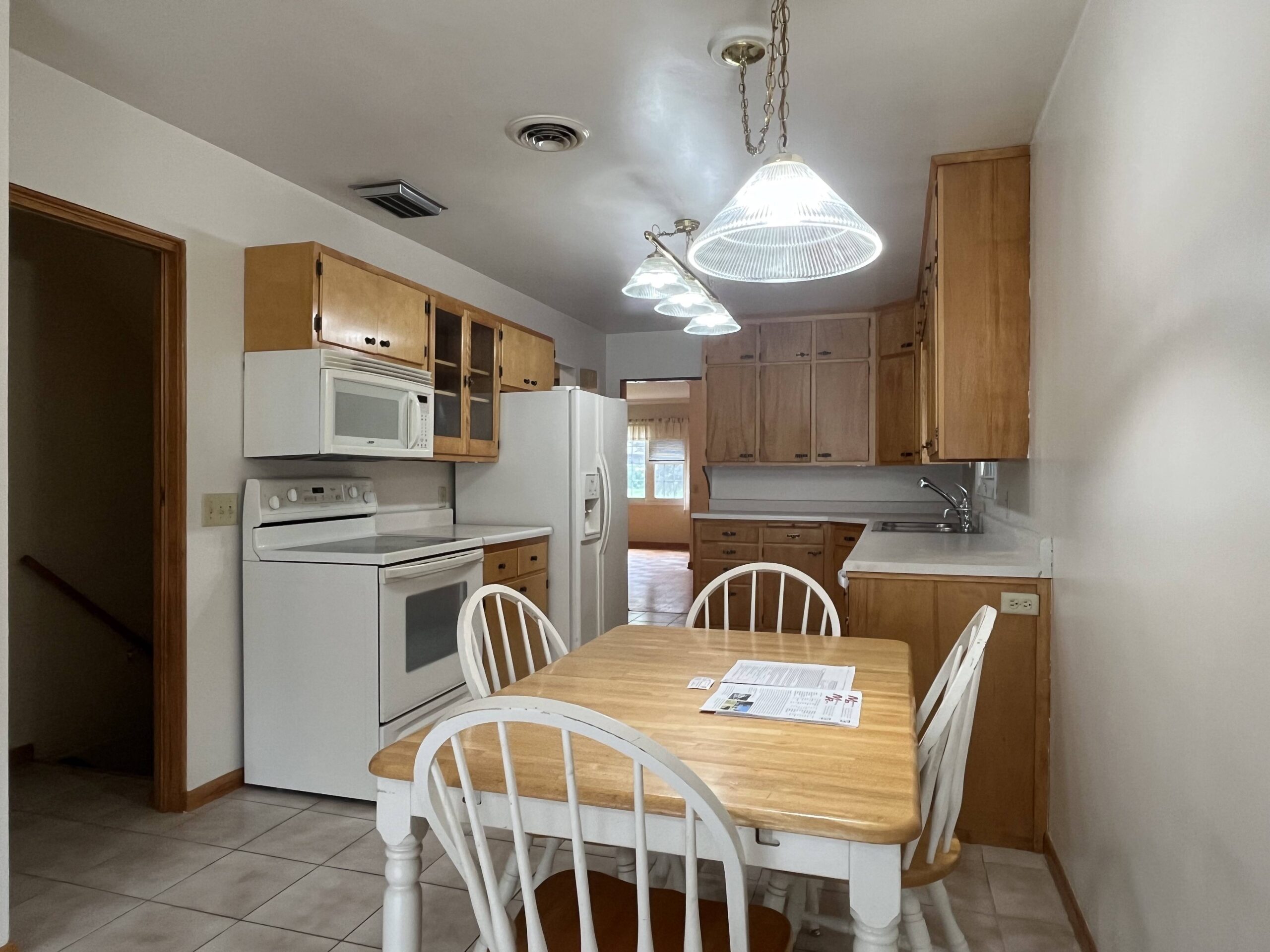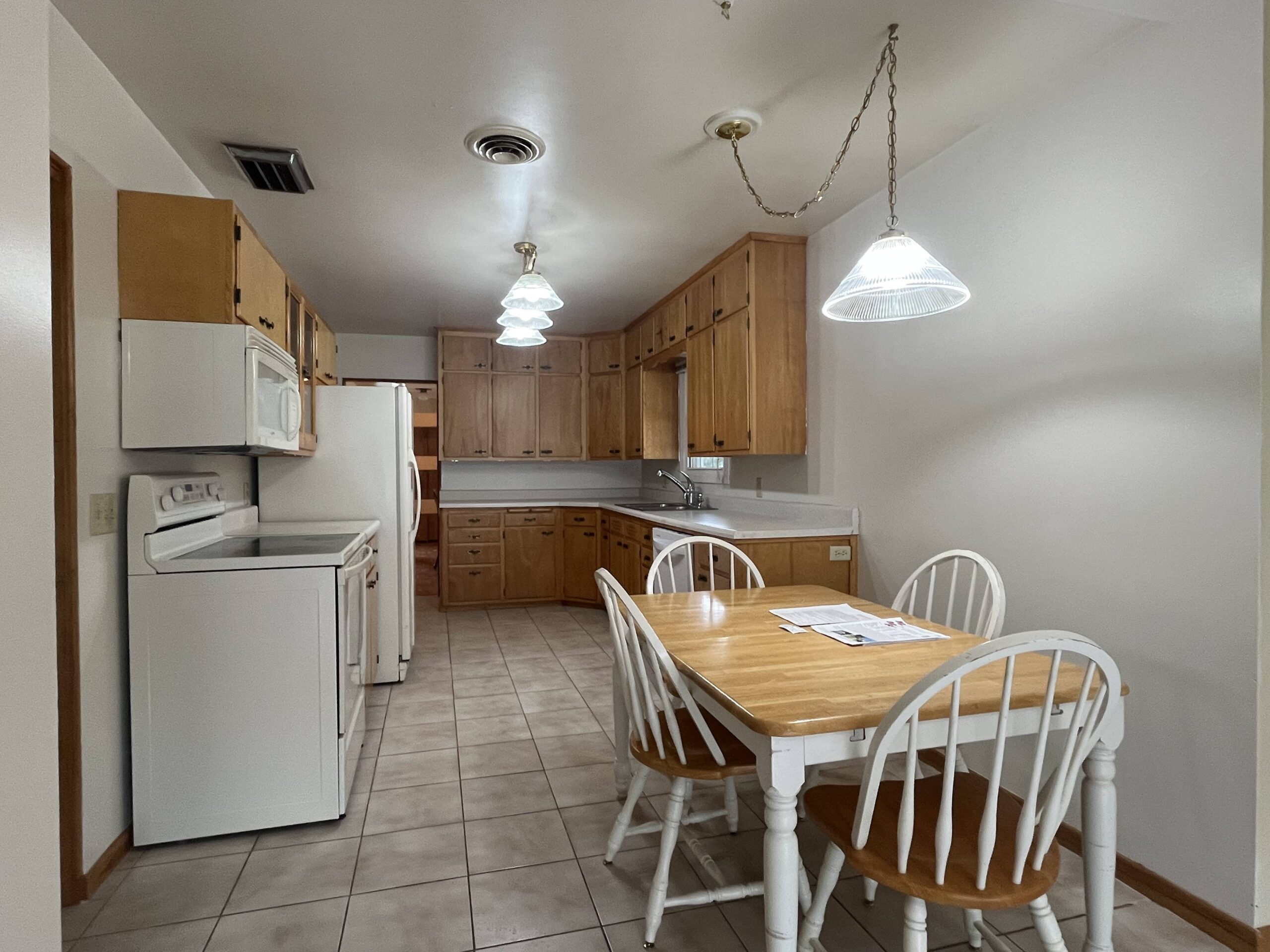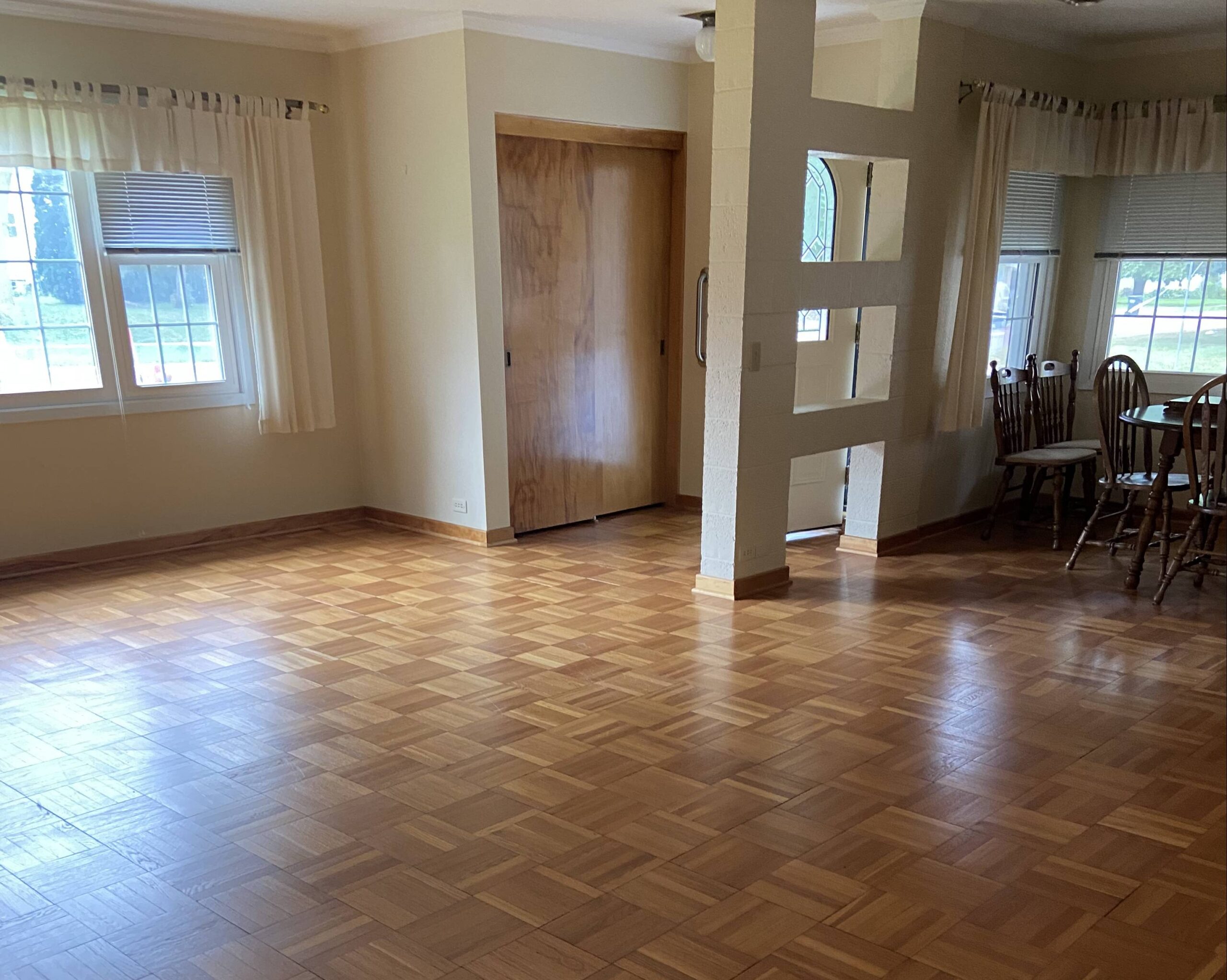A charming and elegant one-story rambler located on a spacious & shady corner lot in the southeast part of St. James. Featuring an open kitchen & eating area with birch cabinets, built-ins and newer countertop, with ceramic tile floor leading into the partially open family room, ¾ bath, front entry into open living room and formal dining with parquet flooring, built-in hutch & electric fireplace. Lots of closets in the hallway to primary bedroom with triple closet, two more large bedrooms, office area and ¾ bath. Partially finished basement with repainted family room & closet, carpet, and egress window. Home is heated with hot water boiler, natural gas water heater, Culligan water softener, lots of freshly painted walls, exterior brick & trim has been painted, and power washed the entire exterior including the sidewalks and driveway, 100-Amp CB electrical service, sump pump, some waterproofing, new Thermopane windows, extra insulation, newer asphalt shingles, metal facia and soffit, concrete block walls & vinyl siding on the addition. Breezeway with new door that leads to 2-stall garage with attached 3-season porch & patio, lots of landscaping throughout the backyard! Classic homes like this rarely come up for sale and is move-in ready!