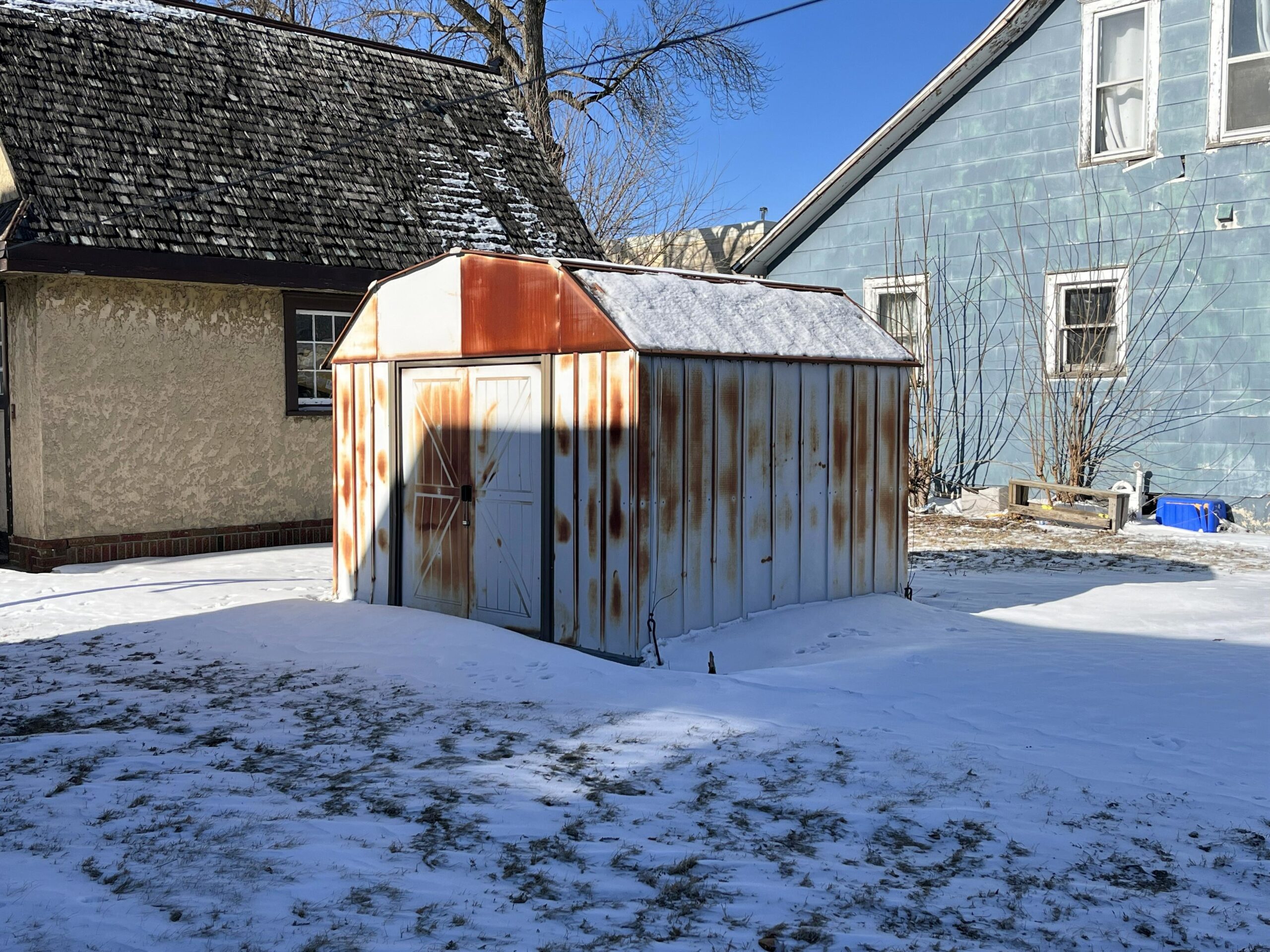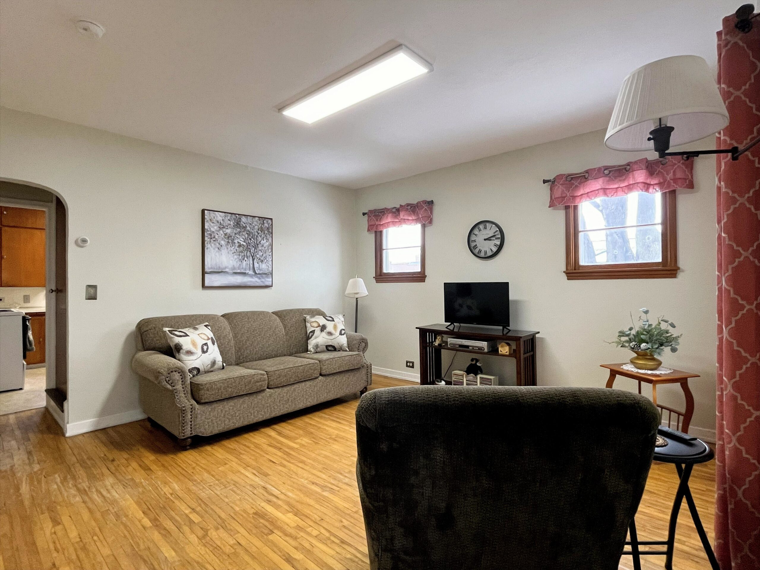 This is a very neat 1 1/2 story home located on a corner lot one block from main street. House features hardwood floors throughout the first floor, a spacious kitchen & eating area, nice sized living room, two bedrooms, and full bath on the first floor. Upstairs has a spacious bedroom with large closets. Newer energy efficient furnace updated 100-amp circuit breaker electrical, water softener, aluminum siding, and asphalt shingles. This property has had lots of updates and is competitively priced for immediate sale!