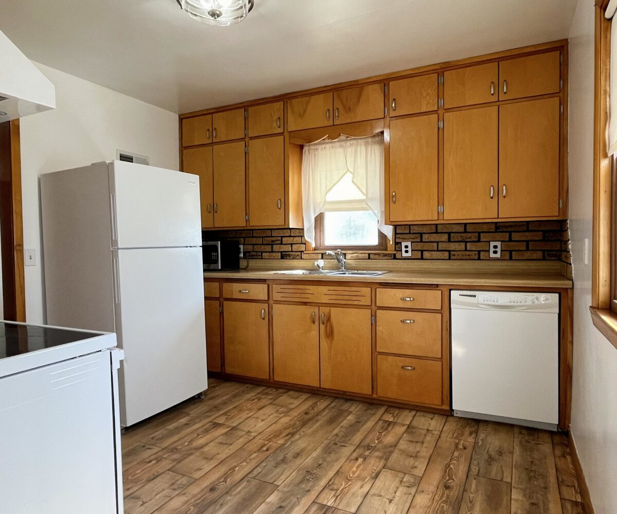 This bungalow-style home is charming and ready to move into! Home has kitchen, formal dining room, large living room, two bedrooms, and a full bath on first floor. Updated windows & flooring. The basement has been nicely updated, painted, 3/4 bath, laundry area, forced air furnace, central a/c, water heater, and water softener. The exterior has vinyl siding, asphalt shingles, cement driveway to a garage, and landscaping.